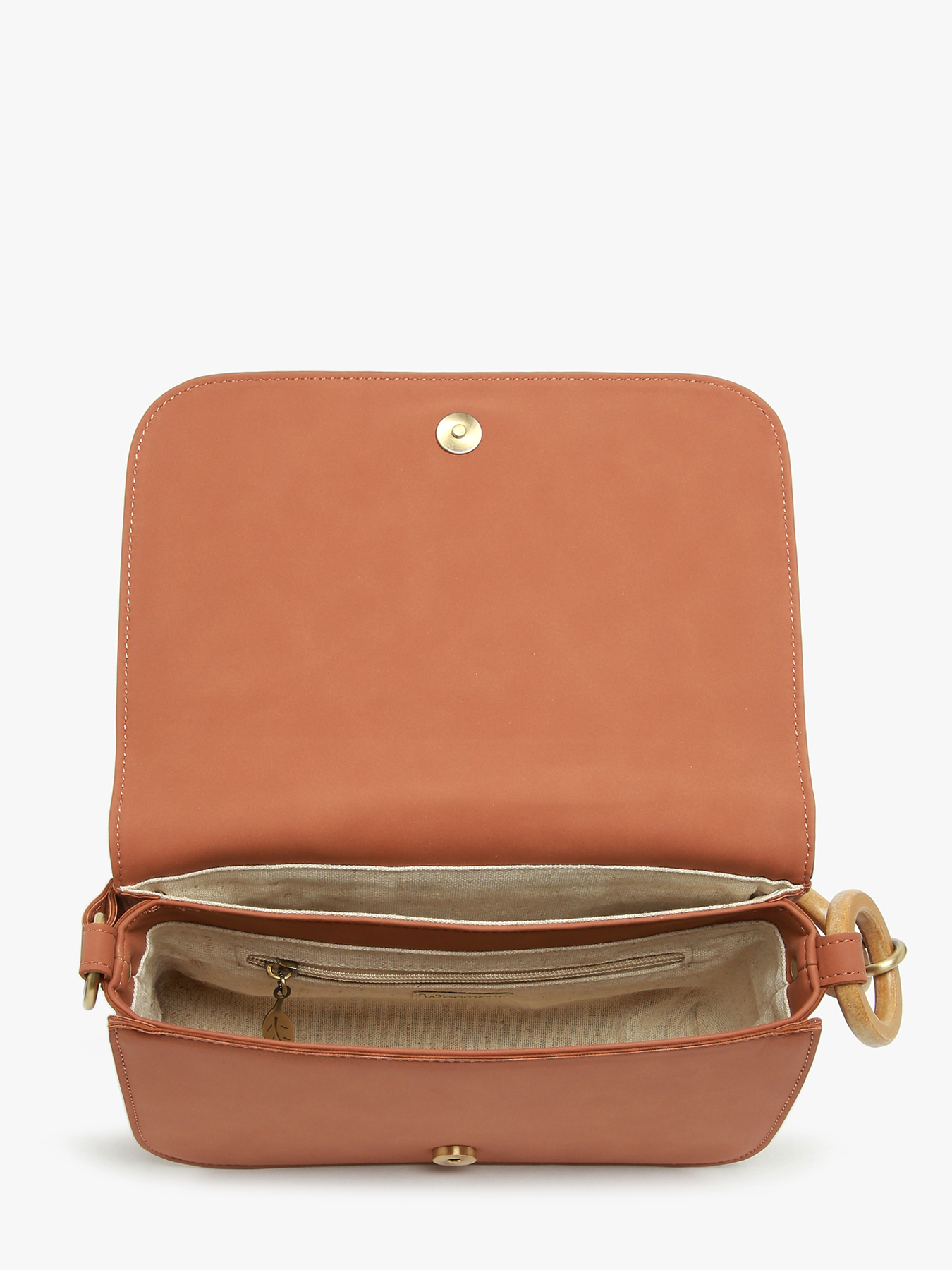 The HELICONIA crossbody bag is crafted from polyurethane composed of 58% recycled materials, combined with a cotton and linen lining for both comfort and a responsible touch. It closes with a magnetic flap and comes with an adjustable shoulder strap enhanced by interlaced rings that add a distinctive style. Inside, it features a main compartment and a zip pocket for easy organization. On the outside, two back pockets provide additional storage space. Its refined new logo highlights a modern and elegant design, making this bag a practical yet stylish companion for everyday use.