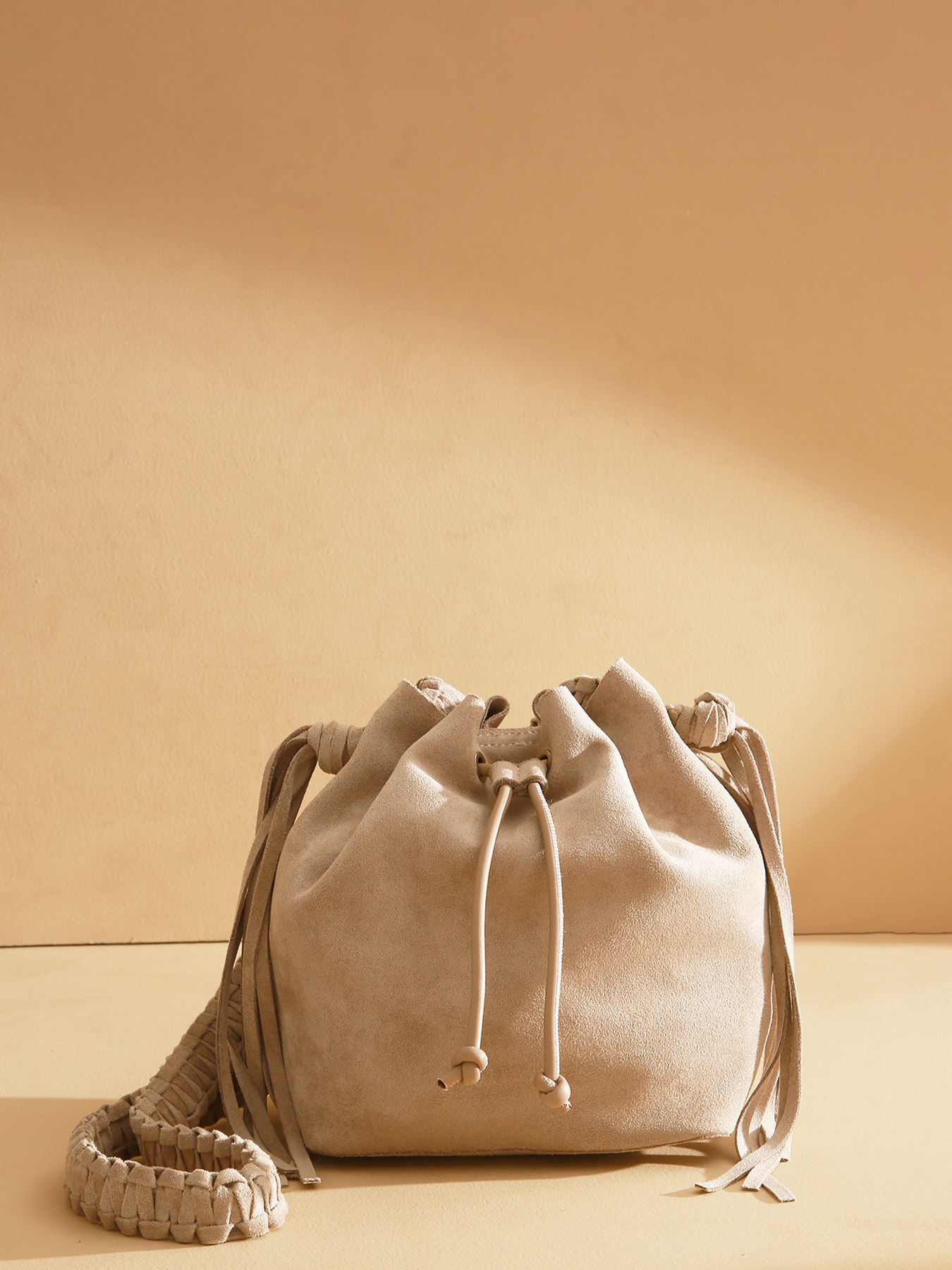 The Maranta drawstring crossbody bag captivates with its velvet material and braided strap, whose ends feature tassels that gracefully drape along the sides, adding li... View more