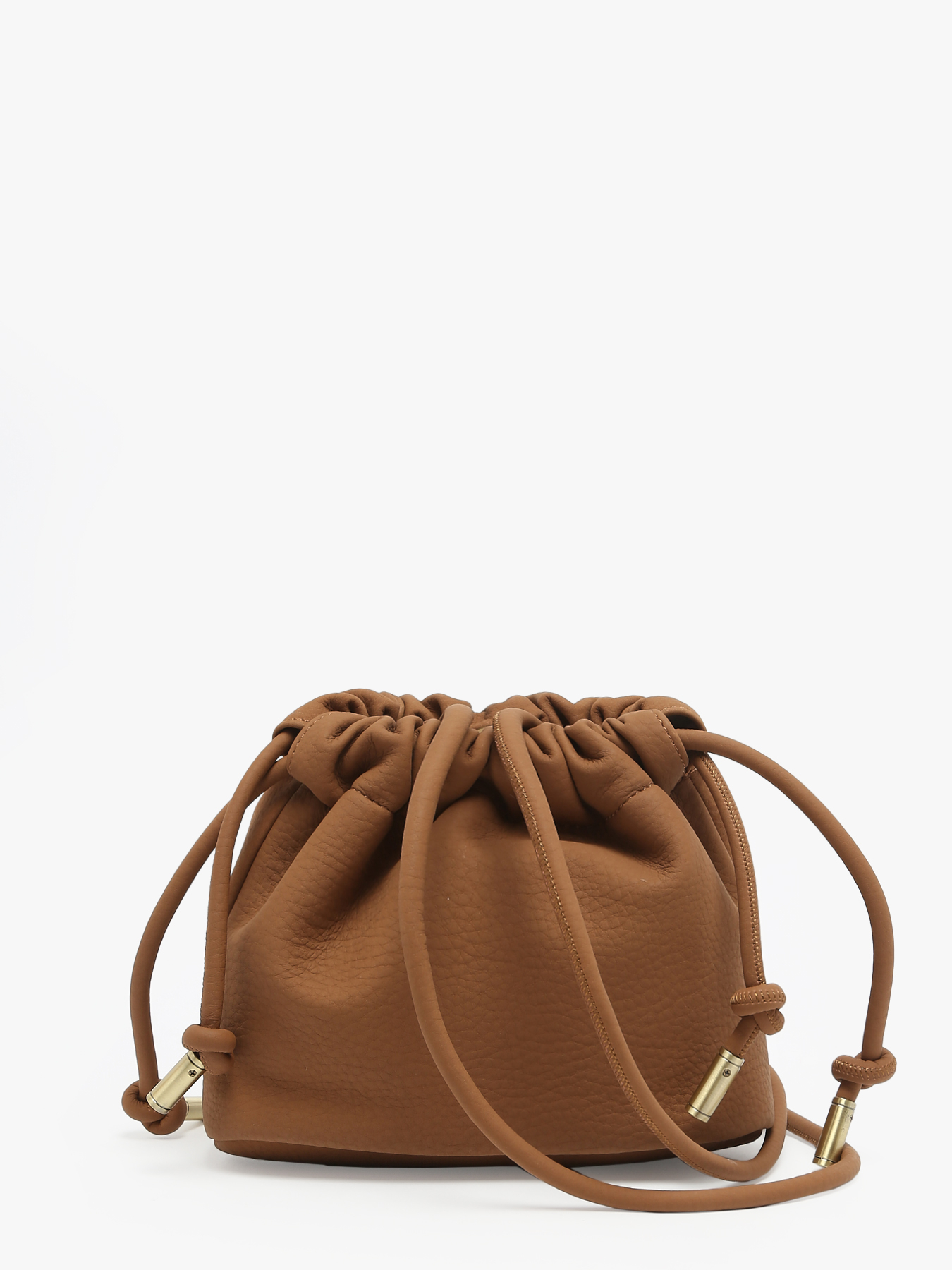 This MUSCARI crossbody bag is made from recycled polyurethane with a grained effect and a peach-skin feel. This small pouch with a puffy design is distinguished by its drawstring detail, allowing you to adjust the bag to your liking. It closes with a magnetic snap and features a zippered pocket and a single compartment inside for practical organization.