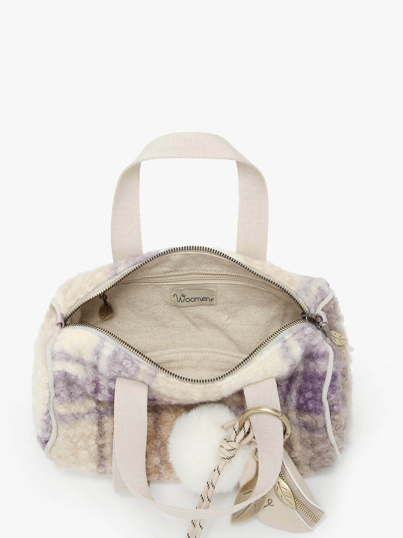 Le sac bandoulière ALYSSUM, format mini bowling, se porte en bandoulière ou à la main grâce à sa bandoulière réglable et amovible ornée du rappel de la marque Woomen. Confectionné en polyester avec une doublure en coton et lin, il possède une fermeture zippée, un intérieur doté d’une poche simple, d’une poche zippée et d’un compartiment unique, agrémenté d’un bijou de sac qui apporte une touche originale et élégante.