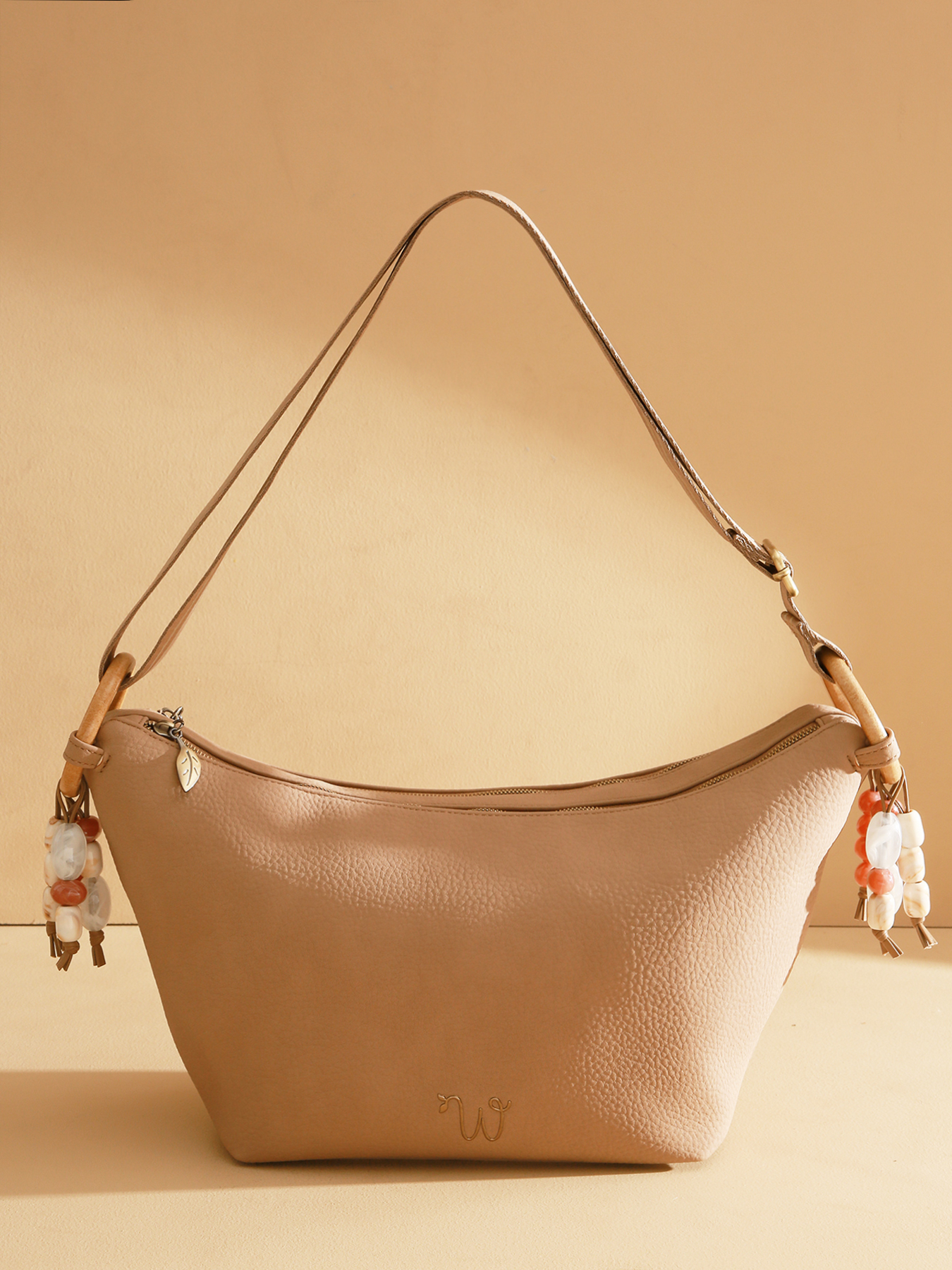 Le sac bandoulière de la ligne Camomille Pearl se distingue par ses franges perlées délicates, véritable signature du modèle, associées à des anneaux en bois qui créent un esprit champêtre raffiné. Confectionné en polyuréthane dont 58% de matières recyclées avec doublure en coton et lin, il allie légèreté et résistance. Il propose une double ouverture pratique avec deux compartiments séparés, ainsi qu’une poche simple et une poche zippée pour une organisation optimale. La bandoulière réglable et amovible permet un porté modulable, tandis que le design élégant et les finitions soignées apportent une touche moderne et raffinée. Le logo en résine dorée affirme l’allure chic et moderne du modèle.