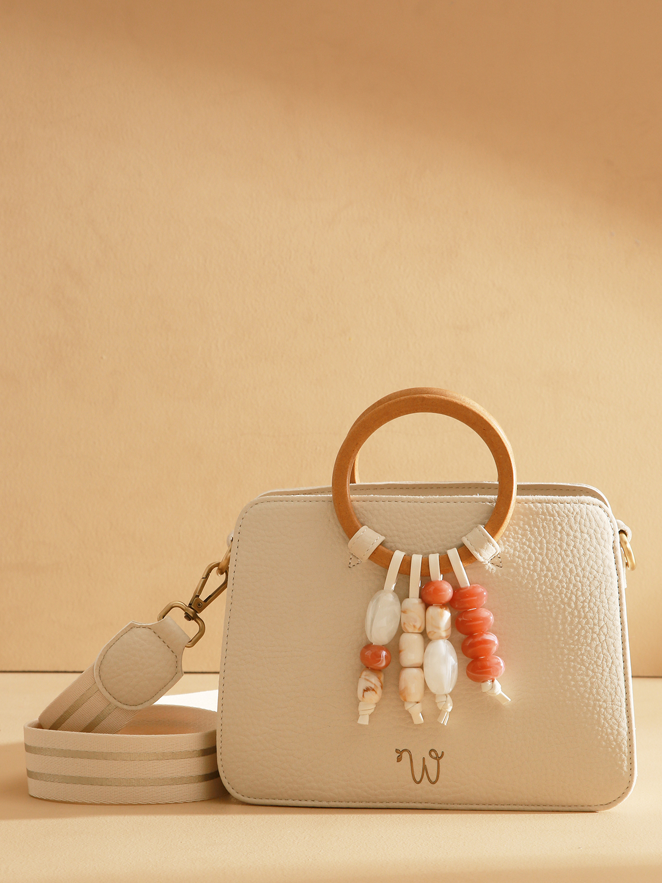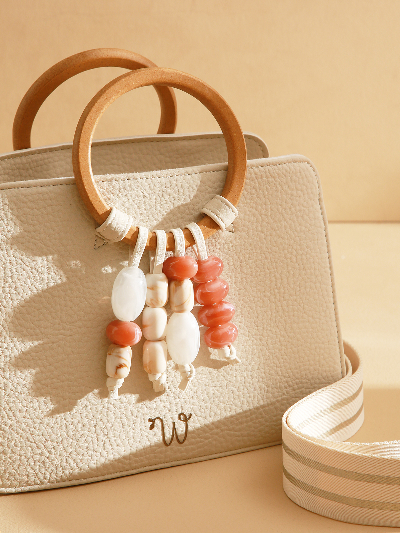 Le sac bandoulière format S de la ligne Camomille Pearl se distingue par ses franges perlées délicates, véritable signature du modèle, associées à des anneaux en bois pour un esprit champêtre raffiné. Confectionné en polyuréthane dont 58% de matières recyclées avec doublure en coton et lin, il allie légèreté et résistance. Sa bandoulière irisée, réglable et amovible, permet un porté modulable, tandis que ses trois compartiments dont celui du milieu zippé, sa poche éclair intérieur et sa poche au dos extérieure garantissent une organisation optimale et la sécurité des essentiels. Le logo en résine dorée apporte une touche contemporaine et élégante.