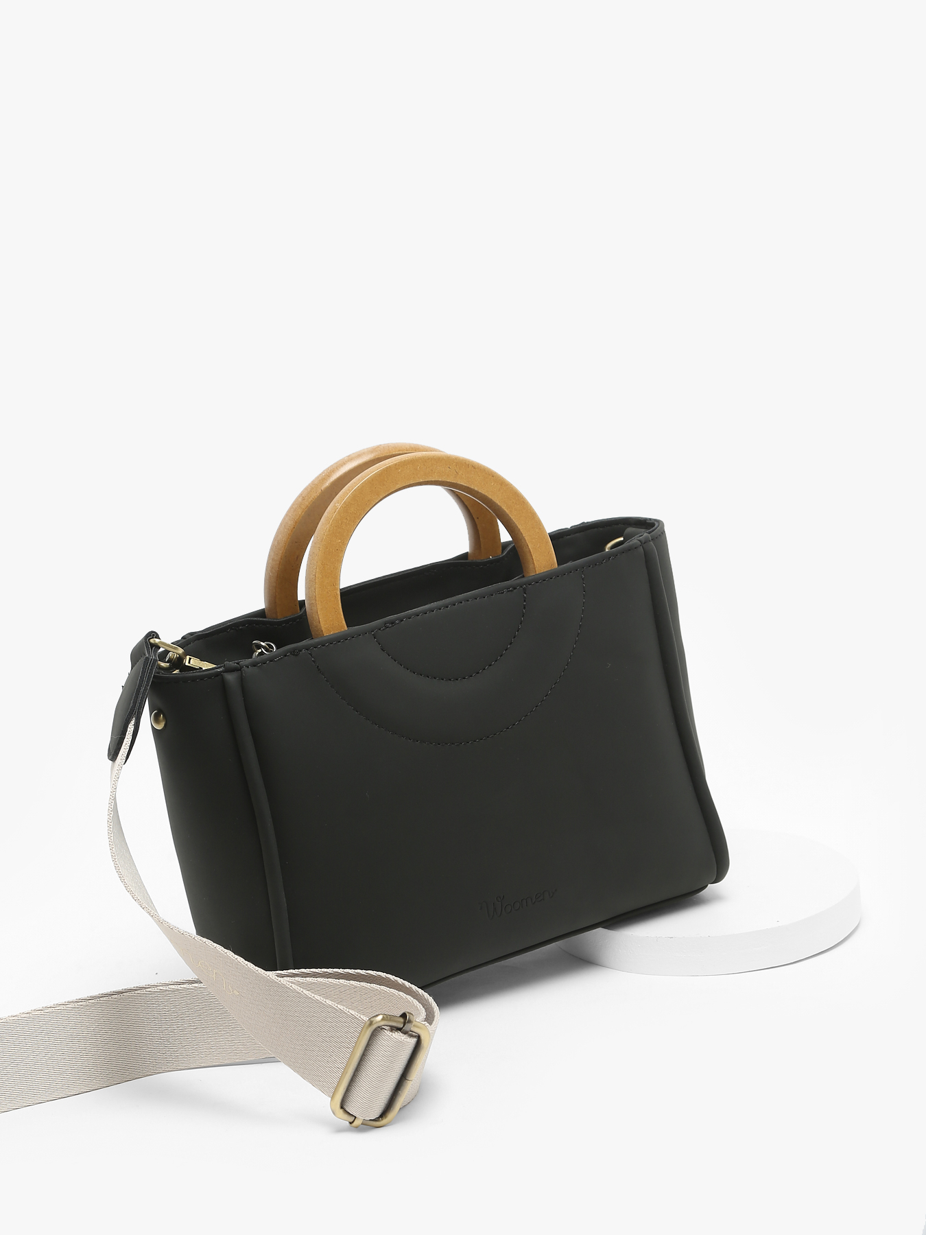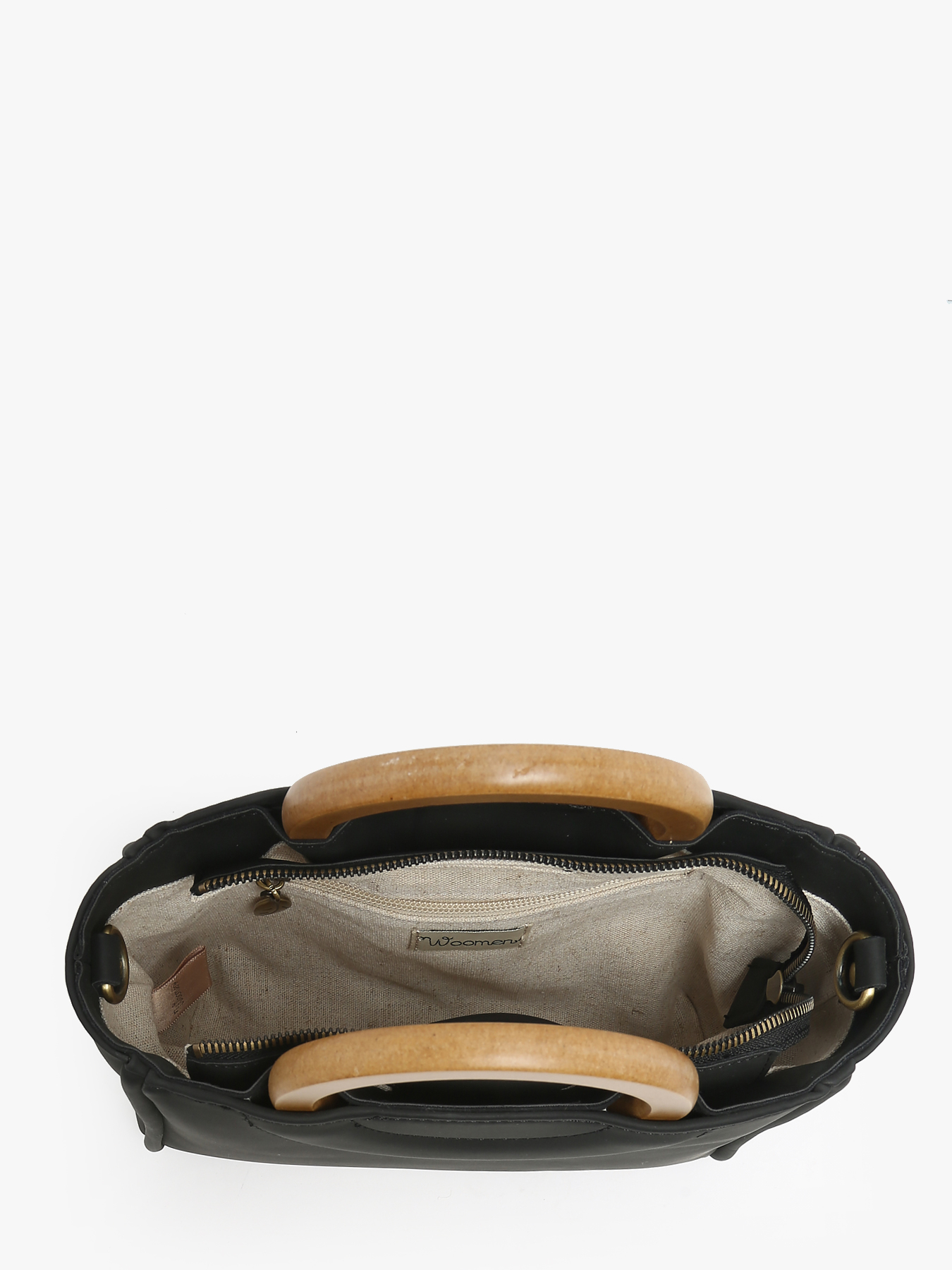 Le sac porté main CROCUS, en polyuréthane composé à 58% de matières recyclées avec une doublure coton et lin, se ferme par une fermeture zippée. Il se porte en bandoulière ou à la main et dispose d’un compartiment unique, d’une poche simple et d’une poche éclair. Sa bandoulière beige avec l’imprimé Woomen et l’anneau en bois en guise de poignée ajoutent une touche élégante.