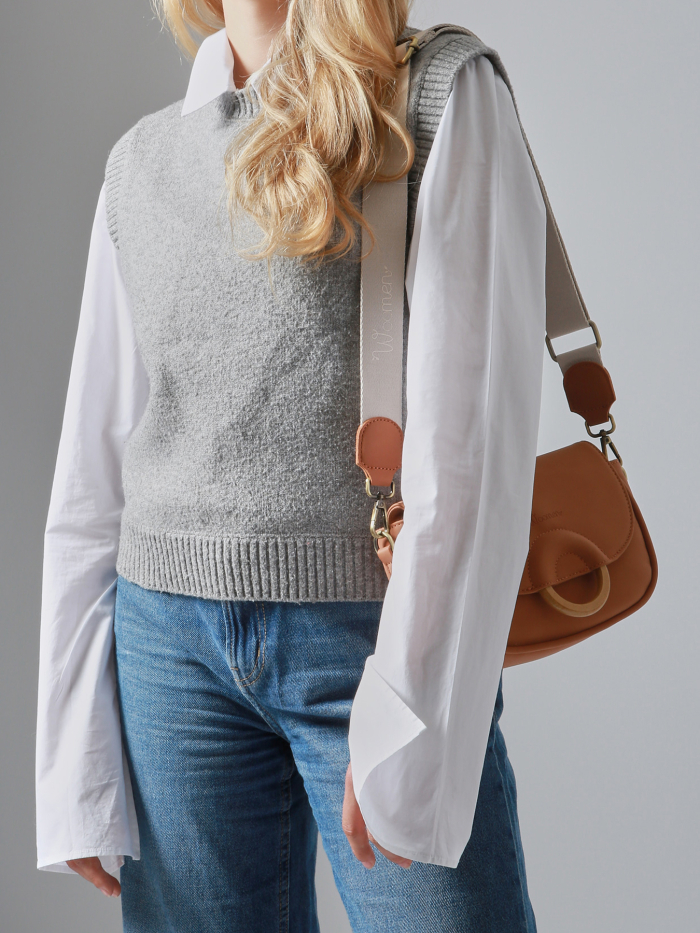 Le sac bandoulière CROCUS, en polyuréthane composé à 58% de matières recyclées avec doublure coton et lin, se ferme par une fermeture zippée, un rabat et un aimant. Il se porte en bandoulière porté haut, avec une poche au dos, une poche simple et une poche zippée à l’intérieur. Sa bandoulière beige avec l'imprimé Woomen et l'anneau en bois sur le rabat ajoutent une touche élégante.