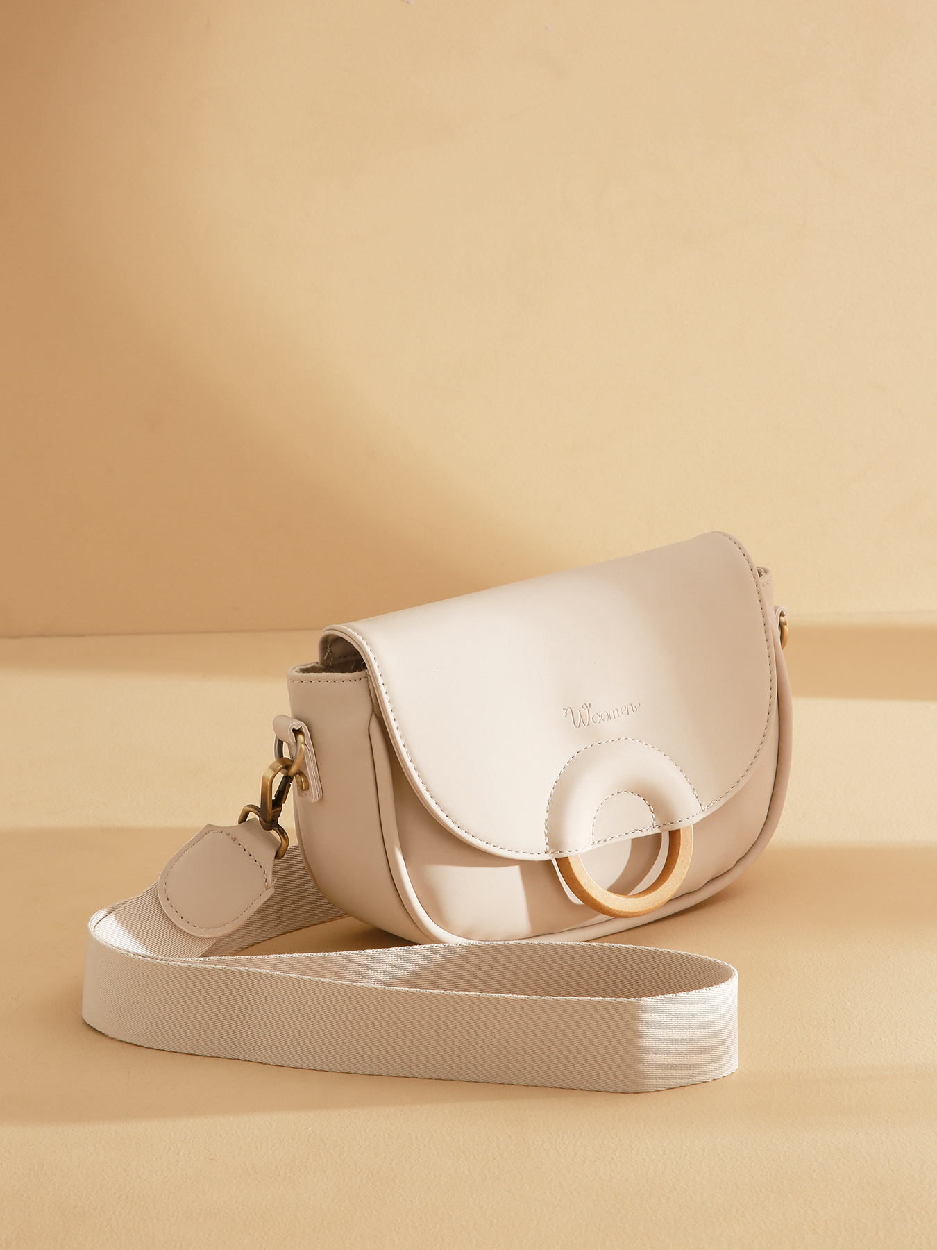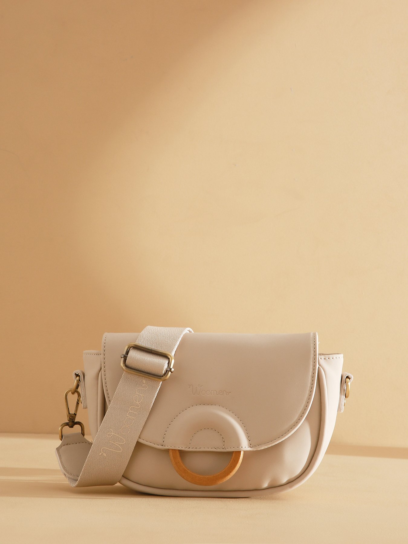 Le sac bandoulière CROCUS, en polyuréthane composé à 58% de matières recyclées avec doublure coton et lin, se ferme par une fermeture zippée, un rabat et un aimant. Il se porte en bandoulière porté haut, avec une poche au dos, une poche simple et une poche zippée à l’intérieur. Sa bandoulière beige avec l'imprimé Woomen et l'anneau en bois sur le rabat ajoutent une touche élégante.