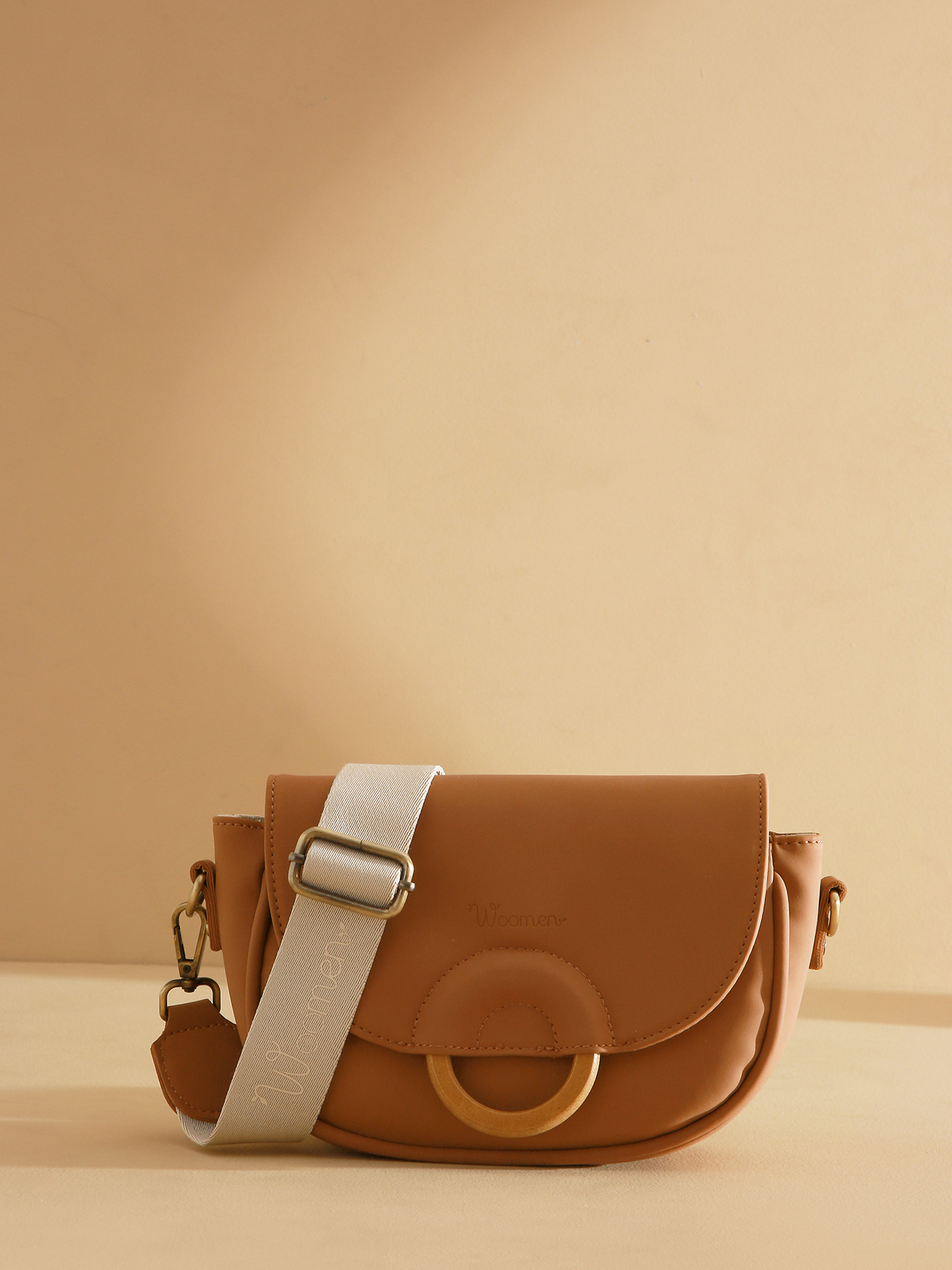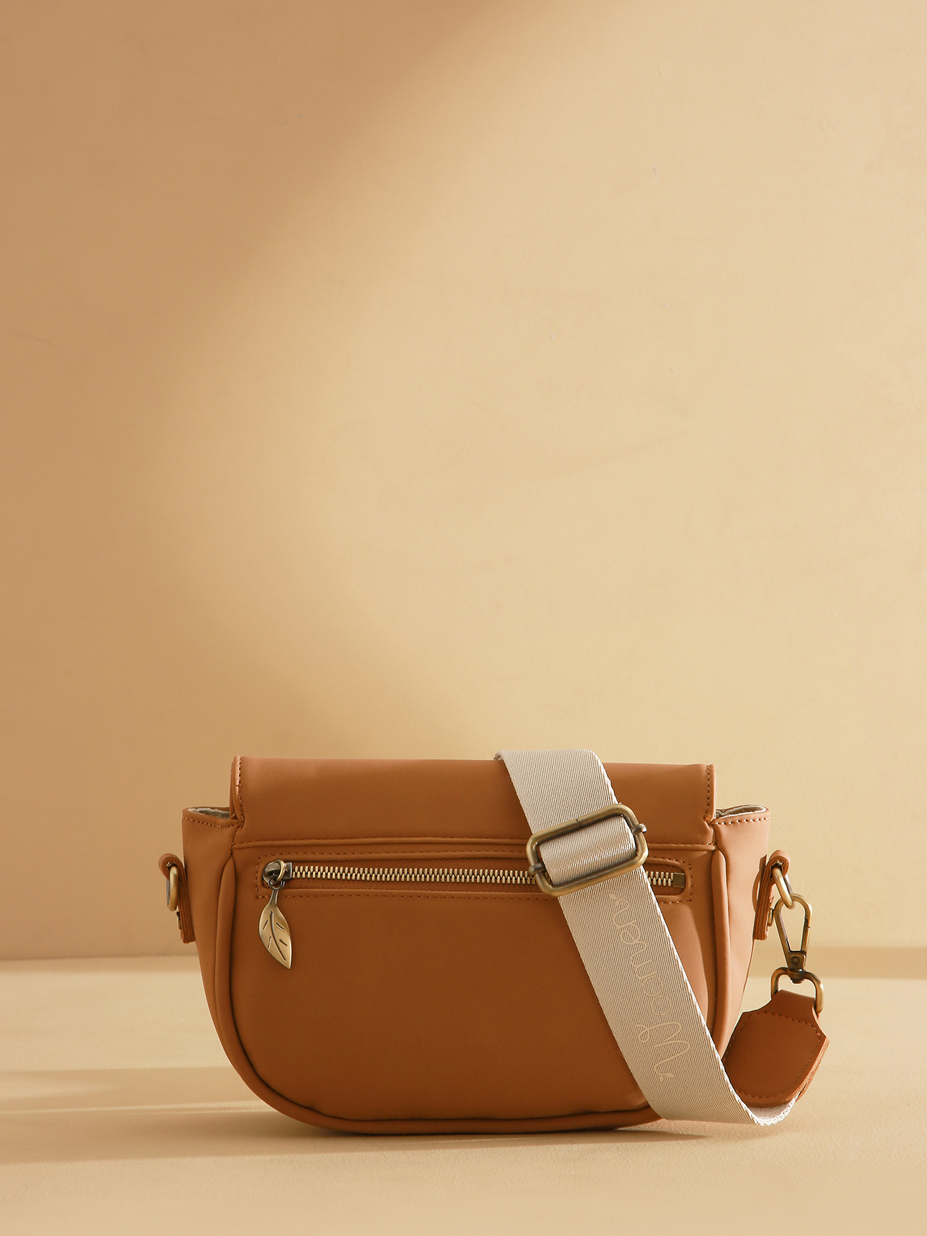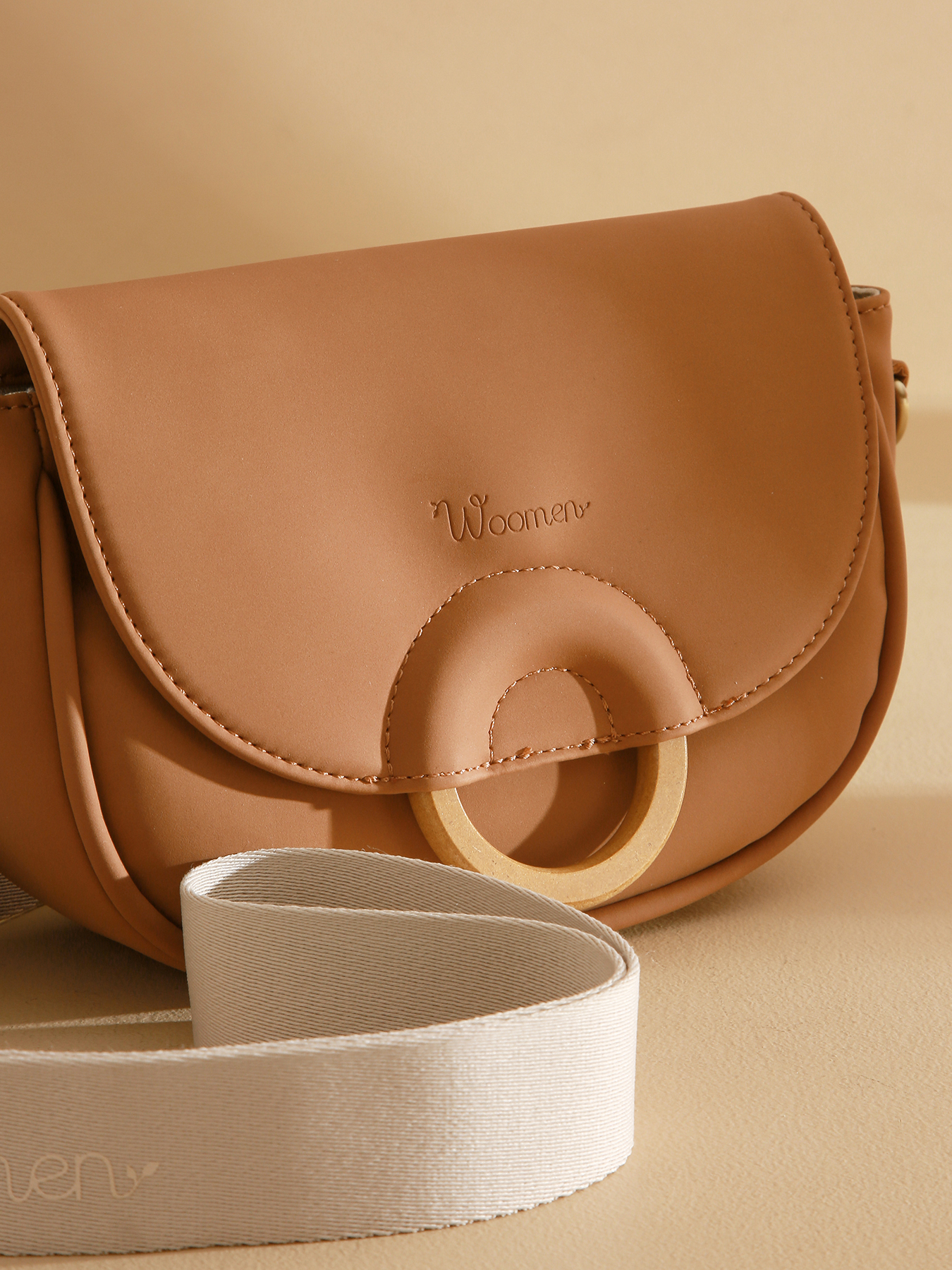 Le sac bandoulière CROCUS, en polyuréthane composé à 58% de matières recyclées avec doublure coton et lin, se ferme par une fermeture zippée, un rabat et un aimant. Il se porte en bandoulière porté haut, avec une poche au dos, une poche simple et une poche zippée à l’intérieur. Sa bandoulière beige avec l'imprimé Woomen et l'anneau en bois sur le rabat ajoutent une touche élégante.