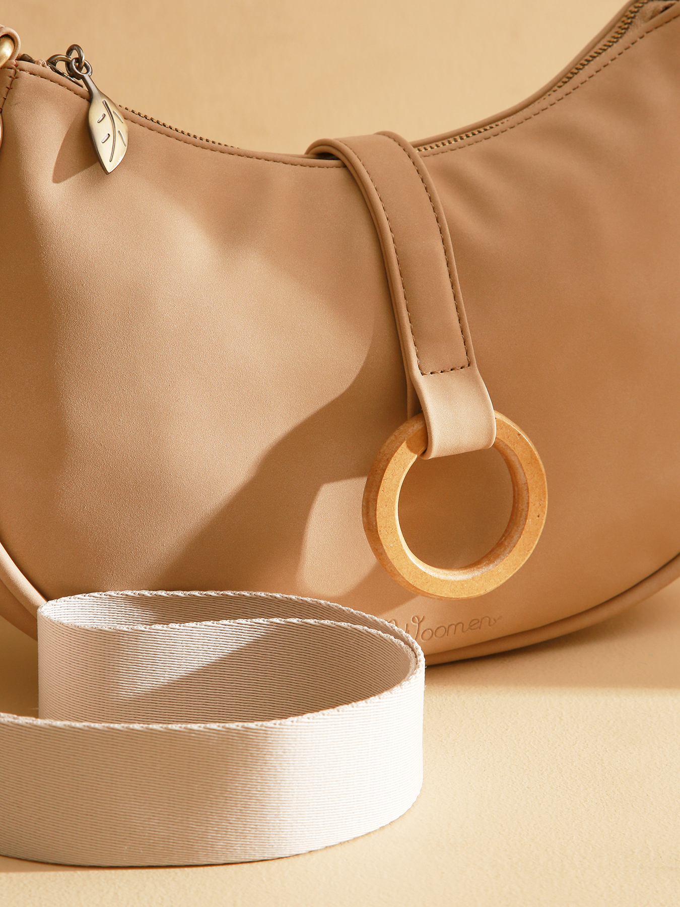 Le sac bandoulière CROCUS allie élégance et fonctionnalité avec sa fermeture zippée, son rabat à aimant et sa bandoulière réglable et amovible imprimée du logo WOOMEN. Confectionné en polyuréthane composé à 58% de matières recyclées avec une doublure en coton et lin, il dispose d’un compartiment unique, d’une poche simple, d’une poche zippée et d’une poche extérieure au dos. Son anneau décoratif sur le devant apporte une touche moderne et distinctive.