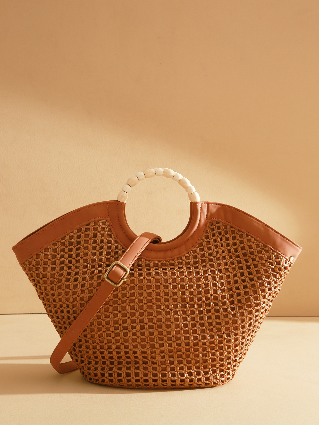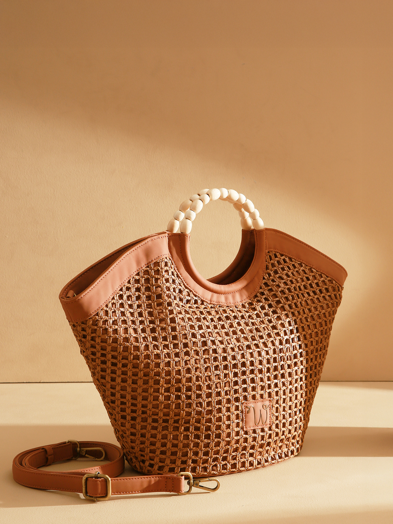 Le sac porté main M, grand format, de la ligne Neflier Estival se distingue par sa poignée ornée de perles et ses finitions précieuses, apportant élégance et esprit estival au design. Confectionné en polypropylène garni de polyuréthane recyclé avec une doublure en coton et lin, il allie légèreté et solidité. Ce sac bi-matière se ferme à l’aide d’une fermeture zippée et dispose d’une bandoulière amovible en polyuréthane, offrant un porté modulable selon vos envies. Le logo en résine dorée vient parfaire le modèle d’une touche raffinée.