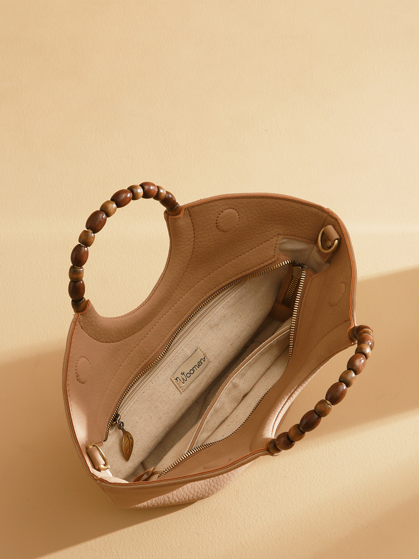 Le sac bandoulière petit format de la ligne Neflier Pearl se distingue par sa poignée recouverte de perles en bois et ses finitions raffinées, apportant élégance et originalité au design. Confectionné en polyuréthane recyclé composé à 58% de matières recyclées, avec une doublure en coton et lin, il allie légèreté et durabilité. Ce sac dispose d’une fermeture zippée, d’une poche zippée au dos et d’une bandoulière amovible en polyuréthane pour un porté modulable. À l’intérieur, une poche zippée et une poche plaquée permettent d’organiser vos essentiels. Le logo en résine dorée vient parfaire le modèle d’une touche raffinée.