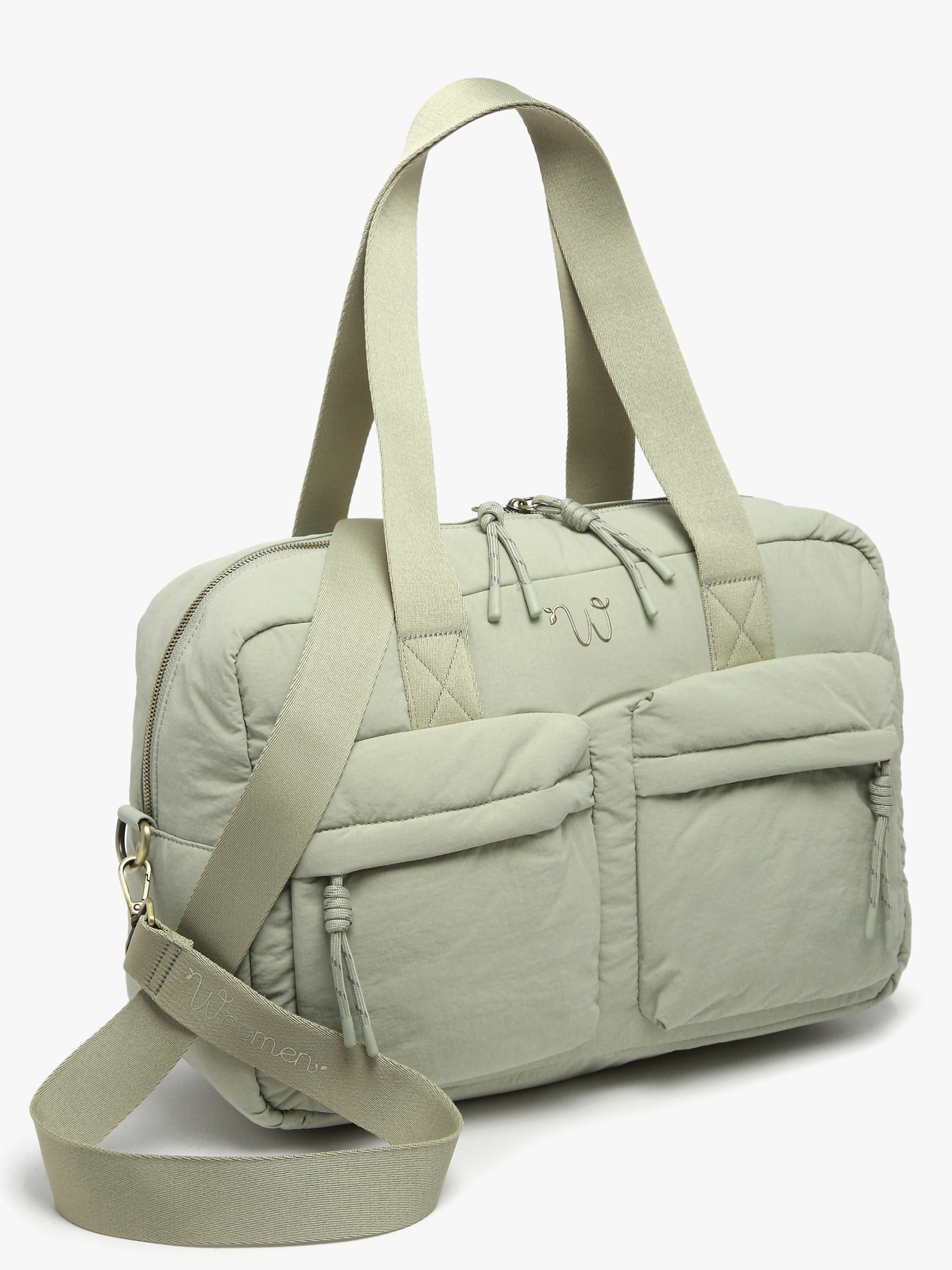 Ce sac week-end PRIMEVERE, confectionné en nylon recyclé avec doublure coton et lin, allie praticité et élégance. Il se porte à l’épaule, en porté travers ou à la main grâce à sa bandoulière intégrée. Son extérieur fonctionnel comprend deux poches avant et une poche arrière dissimulant une poignée pour l’attacher à une valise. Son logo doré et ses cordons fantaisies subliment cet accessoire responsable, pensé pour vos déplacements avec style et efficacité.