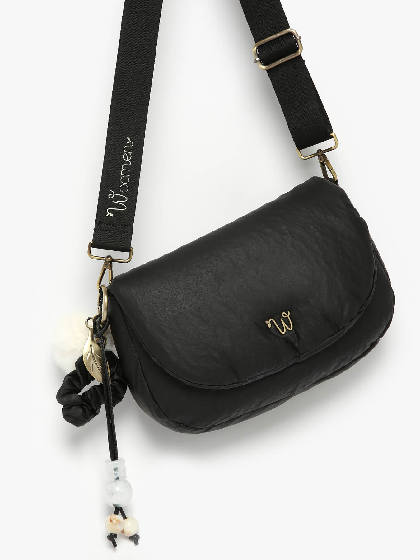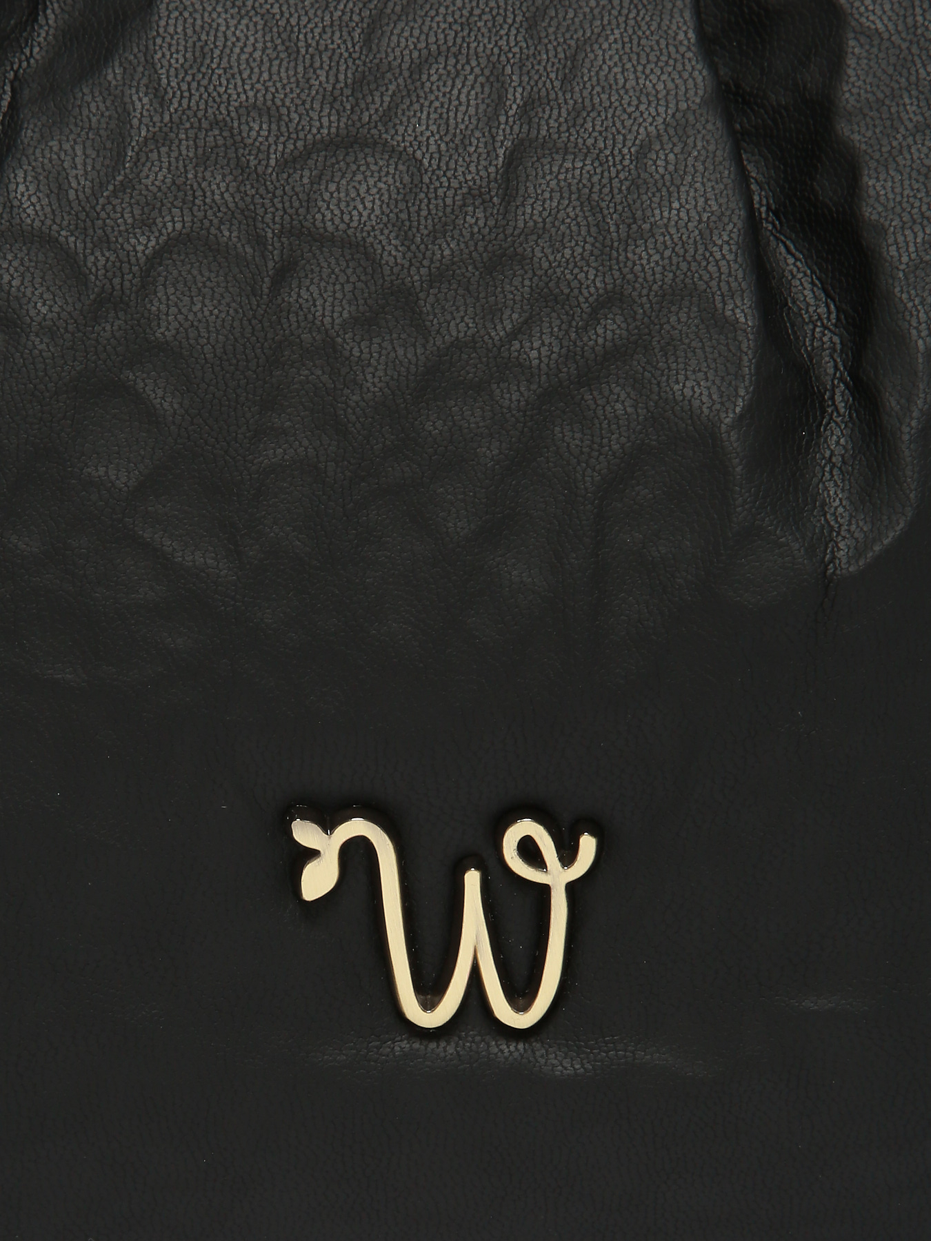 De ALIZIER crossbodytas in groot formaat combineert elegantie en functionaliteit met zijn magnetische klep, binnenritssluiting en verstelbare, afneembare schouderriem met “WOOMEN”-print. Gemaakt van polyurethaan met een voering van katoen en linnen, biedt hij één hoofdvak, twee simpele zakken en één ritsvak. Zijn tassenhanger, versierd met een scrunchie, kralen en een pompon, samen met het metalen W-logo, maken dit verfijnde model compleet.