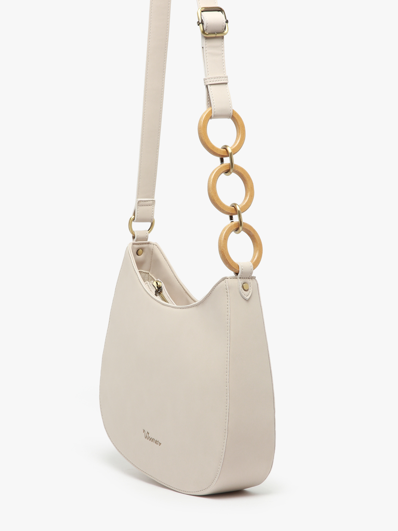 De HELICONIA crossbodytas is ontworpen in gerecycled polyurethaan, met een voering van katoen en linnen voor extra comfort. Hij wordt gesloten met een rits en heeft een verstelbare schouderriem, versierd met verstrengelde ringen. Binnenin biedt hij een hoofdvak, een eenvoudige zak, een ritszak en een zak aan de achterkant voor praktische opberging. Het elegante ontwerp wordt afgewerkt met een nieuw, modern logo.
